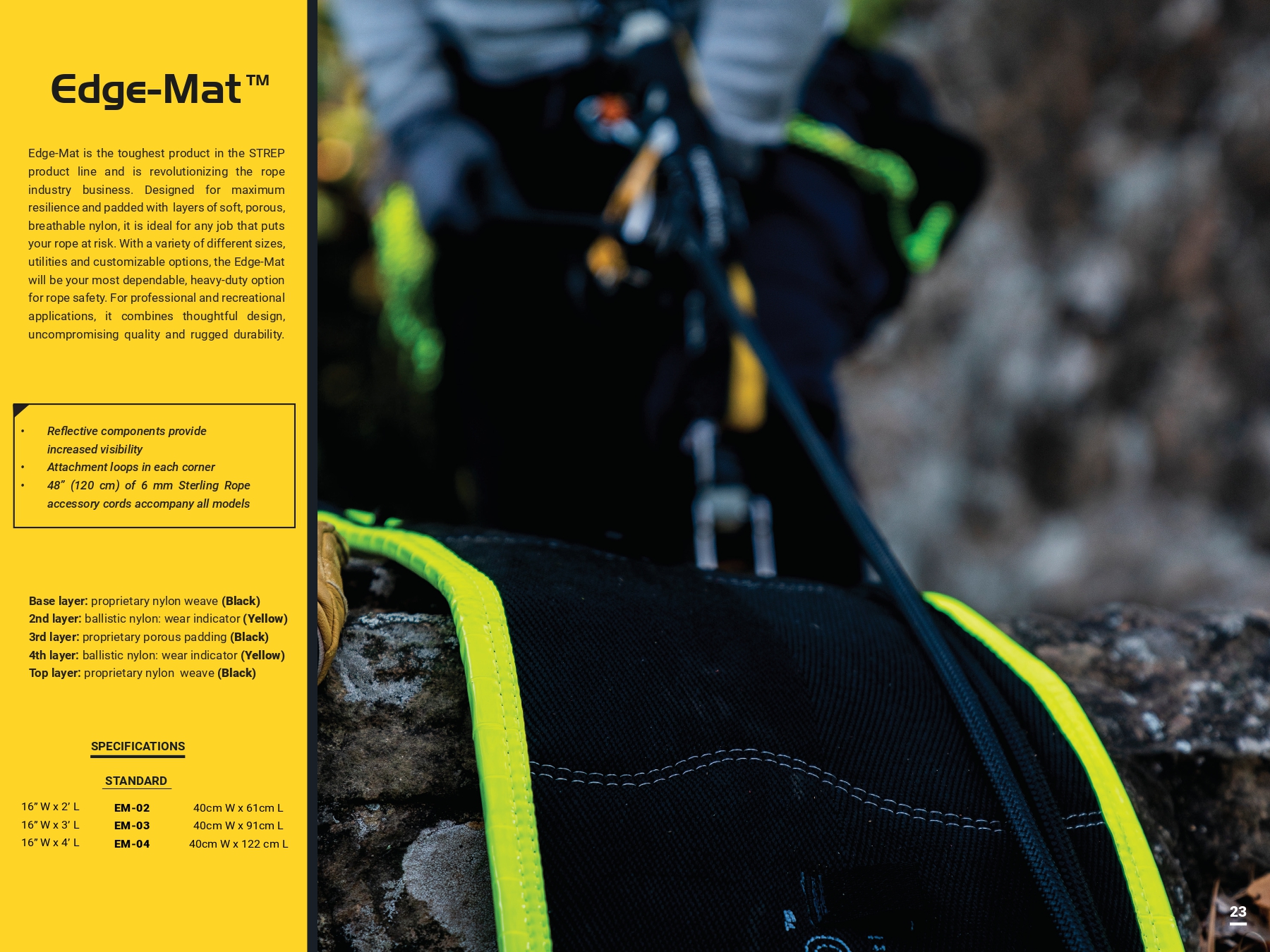 Edge-Mat提供各種不同的尺寸和客製化選項,它將成為最可靠、最耐用的繩索安全選擇。它適用於專業或休閒活動,結合完善的設計、高品質和堅固的耐用性。