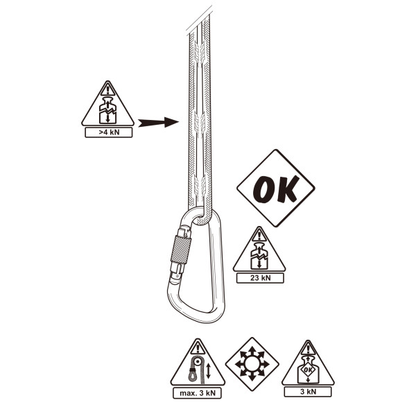 16毫米大,由平行縫製的聚酯繩製成,帶有分段接縫,可以逐漸調整長度,當施加5千頓(5kn)或更高的強度時可當作減震器。