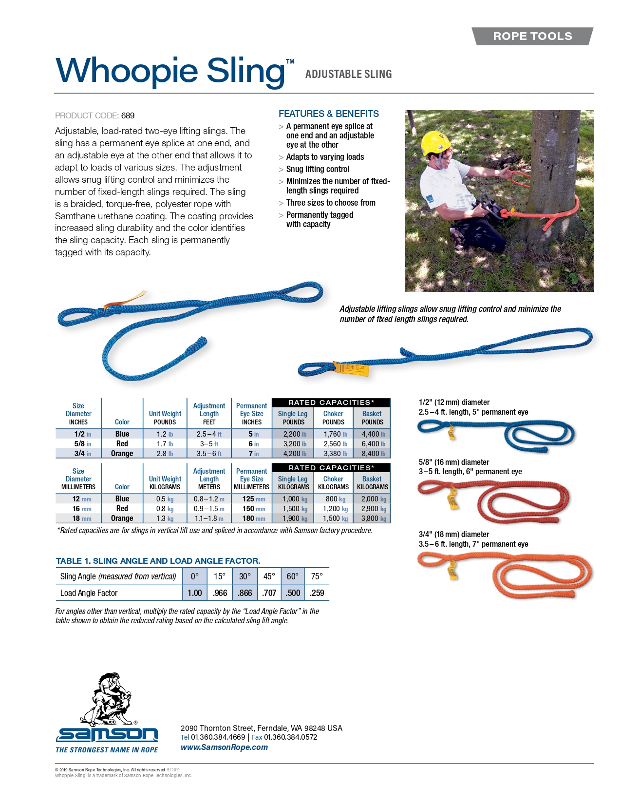 Samson WHOOPIE SLING 是一款經過負載認證的可調式雙眼吊帶。其結構設計巧妙:一端是經過專業編織的固定繩眼,另一端則是利用空心編織特性製作的可調式繩眼。這項設計讓您能根據樹幹粗細或負載物大小,自由調整吊帶長度,達到最緊密、穩固的貼合控制。使用 Whoopie Sling 能大幅減少您攜帶固定長度吊帶的數量,提高作業效率。每條吊帶出廠時皆附有永久性的負載標示標籤,並採用獨立包裝,確保安全規範與品質。