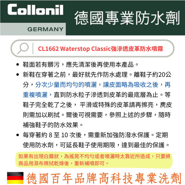 • 德國 Collonil Waterstop Classic 強滲透皮革防水噴霧 CL1662
