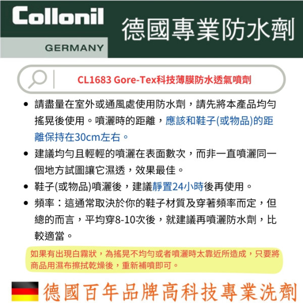 德國 Collonil Gore-Tex 科技薄膜防水透氣噴劑 CL1683