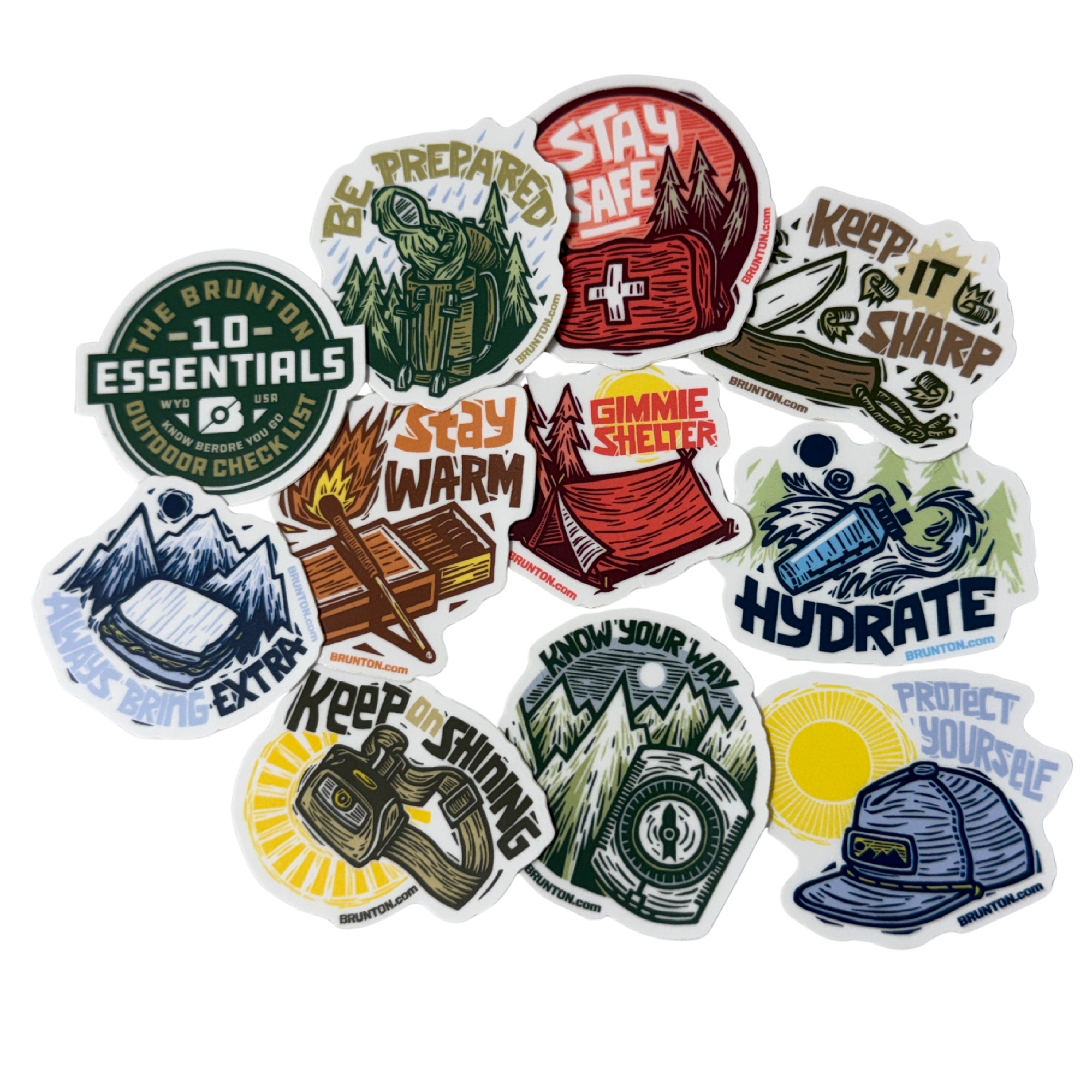 美國 BRUNTON 10 ESSENTIALS CARD & STICKER KIT 戶外十項本能裝備清單 | 防水貼紙組