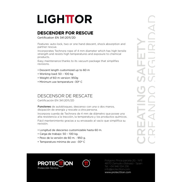 西班牙 Protecttion LIGHTTOR DESCENDER FOR RESCUE 4mm 救援下降器